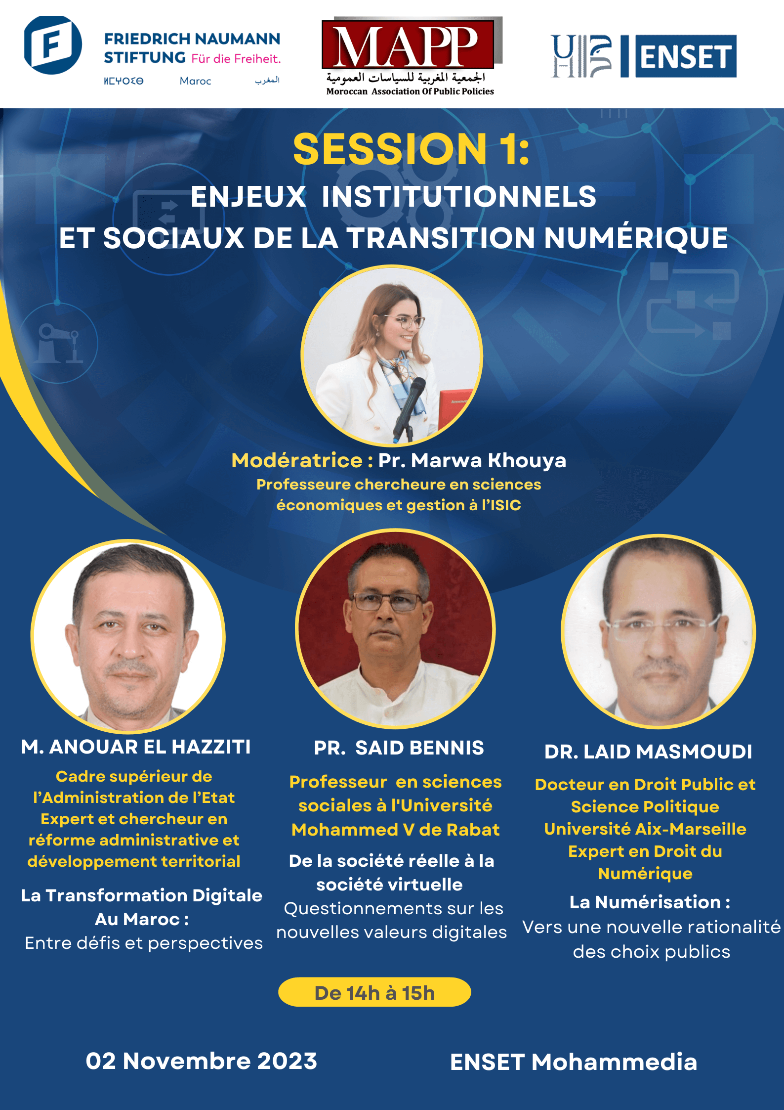 Dans le cadre de son cycle de rencontres interdisciplinaires, la MAPP organise, en partenariat avec l’ENSET de Mohammedia et en collaboration avec la Fondation Friedrich-Naumann -Maroc,